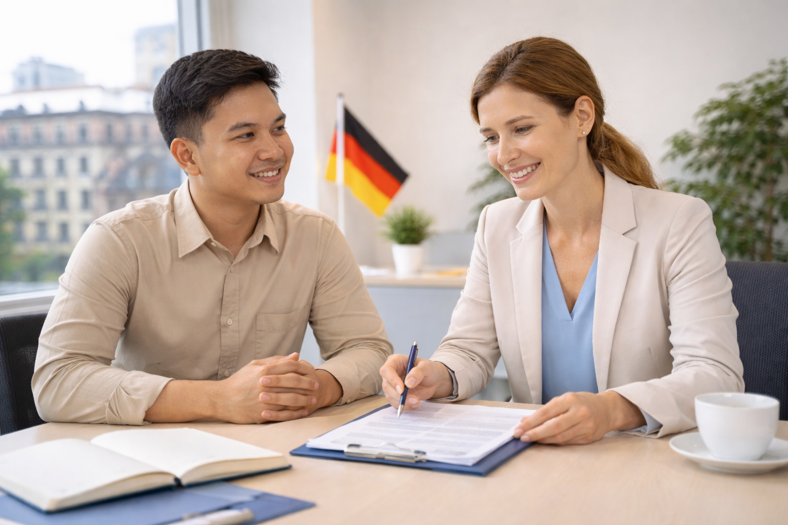 Vom ersten Gespräch bis zur Arbeitsaufnahme – wir begleiten Dich Schritt für Schritt auf Deinem Weg nach Deutschland.